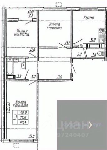 Продаётся 3-комнатная квартира в сданном доме (Лётчика Филипова, 4 (позиция 3)), срок сдачи: IV-кв. 2024, общей площадью 100.8 кв.м., на 16 этаже. Расположение, транспортная доступность Пятнадцать 16-этажных корпусов жилого комплекса "Спутник" занимают территорию около 16 га вблизи окружной дороги (улицы Антонова-Овсеенко, Ломоносова) и Московского проспекта (магистраль А-134 - подъездная автодорога к федеральной трассе М-4 "Дон"). Жилой квартал расположен в северной части города, рядом с лесным массивом Воронежской нагорной дубравы. Комплекс граничит с коттеджным поселком "Лесная поляна", гаражным кооперативом и фруктовым садом. На расстоянии около 4 км находится пляж на берегу Воронежского водохранилища. По Московскому проспекту можно за десять минут доехать до международного аэропорта, за двадцать минут - до железнодорожного вокзала или административного центра города. В шаговой доступности находятся остановки общественного транспорта - 35 маршрутов в центр Воронежа, до вокзала, автостанции, аэропорта, в близлежащие районы и пригороды. Инфраструктура Внутри жилого комплекса построен детский сад на 280 мест, спортивные площадки для занятий гимнастикой и игр в волейбол, баскетбол и мини-футбол. Планируется открытие общеобразовательной школы на 1224 ученика. По соседству работают супермаркет "Магнит", школа с бассейном и гимназия. Вблизи ЖК "Спутник" расположены спорткомплекс "Олимпик", теннисный клуб "Адмирал" (с катком, бассейном и теннисными кортами), областная клиническая больница 1. Недалеко находятся торговый центр "Московский проспект" (с гипермаркетом "Лента"), сити-парк "Град", рынок "Воронежский". Практически в любой район города можно доехать на автобусе или маршрутном такси, которые останавливаются в десяти минутах пешком от комплекса. Надежность застройщика Проект комплексной застройки "Спутник" у Московского проспекта реализует ООО предприятие "ИП К.И.Т.", основанное в 1991 году. Компания начинала с производства сетки "Рабица", и за два десятилетия превратилась в крупную строительную организацию. Возведение первого жилого дома было начато в 1992 году. Предприятие владеет заводом по производству газосиликатных блоков, имеет собственную архитектурную мастерскую, производственную базу и крановое хозяйство. На заводе "Техоснастка" выпускаются лифты. Для обслуживания построенных домов создана собственная управляющая компания. Архитектура Общая площадь участка, выделенного под микрорайон ЖК "Спутник", превышает 21 га. Конструктивная схема здания - рамно-связевая. Особенность типовой серии 1.120.1-1с/89 - прочный каркас здания: колонны стянуты между собой стальными тросами, которые укладывают в ригели и заливают бетоном. Наружные стены имеют толщину 61 см, выложены газосиликатными блоками и облицованы полнотелым кирпичом. Высота потолков в квартирах - 2,7 м. Квартиры предложены с черновой отделкой или с ремонтом под ключ: с обоями, линолеумом, входной металлической и межкомнатными дверями, электрической плитой и сантехникой. Раз