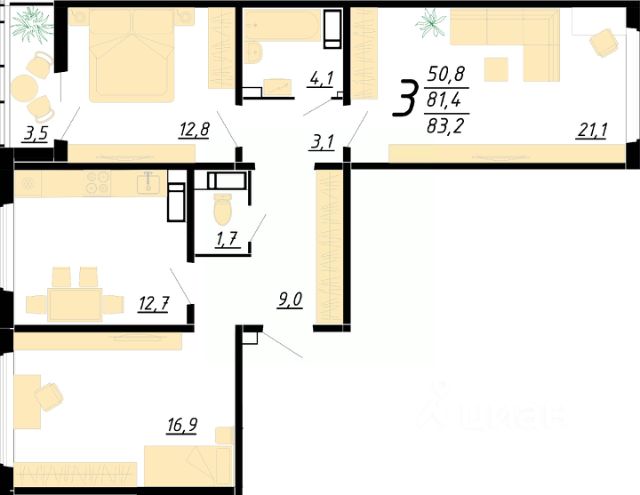 Продаётся 3-комнатная квартира в строящемся доме (Позиция 9), срок сдачи: II-кв. 2027, общей площадью 83.1 кв.м., на 16 этаже. Новый жилок комплекс "Яблоневые сады" от группы компаний "Домостроительный комбинат" расположен по адресу: г. Воронеж, по ул. Загоровского.