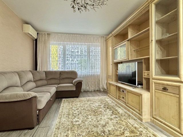Просторная трешка окна на солнечную сторону. В шаговой доступности (5 мин) продуктовые магазины Магнит, Пятерочка, продуктовый и вещевой рынок Универсальная ярмарка, торговые центры Молодежный и Аксиома, остановки городского общественного транспорта расположены в паре минут от подъезда прям напротив арки входа во двор. Двор большой, очень зеленый, автопарковка асфальтирована