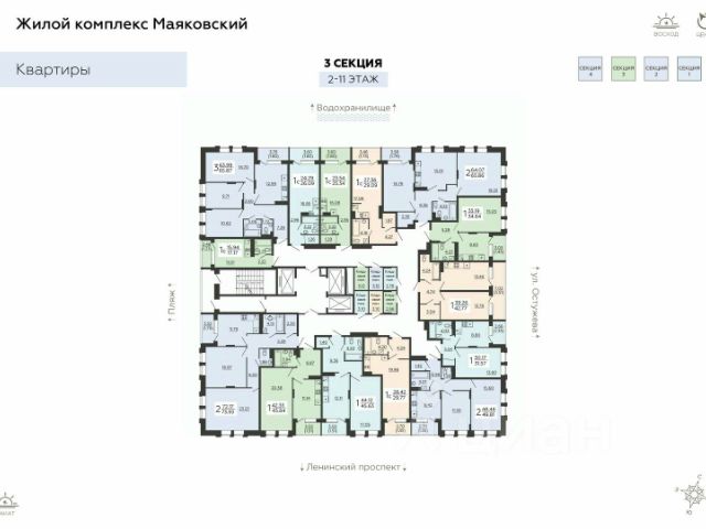 Продаётся 3-комнатная квартира в строящемся доме (улица Димитрова, 131 (Секция 2)), срок сдачи: I-кв. 2028, общей площадью 67.47 кв.м., на 2 этаже. Расположение, транспортная доступность Жилой комплекс "Каскад" строится в развитом районе Воронежа, недалеко от исторического центра. Расстояние до деловых кварталов города всего 5,5 км. На машине этот путь легко преодолеть за несколько минут. У жилого комплекса есть удобный выезд на улицу Димитрова, затем на перекрестке с круговым движением нужно выехать на улицу Брусилова, которая переходит в Чернавский мост, пролегающий через реку Воронеж, а далее по улице Степана Разина добраться до нужной точки в центральной части города. Пассажиры общественного транспорта доберутся до центра за двадцать минут (с учетом ожидания). В ста метрах от ЖК находится остановка "Волгоградская улица", от которой отправляются автобусы и маршрутное такси. Инфраструктура Левобережный район, где расположена новостройка, отличается благоприятной экологической обстановкой и развитой сетью инфраструктуры. На первых этажах здания разместятся магазины и другие коммерческие объекты. Все необходимое для комфортной жизни расположено в непосредственной близости от ЖК. В двух шагах от "Ксакада" - продуктовый рынок, сетевые супермаркеты "Пятью пять", "Пятерочка", почта, аптека "Будь здоров", парикмахерская, салон красоты "Аврора". Немногим дальше расположены пиццерия "Жар-Пицца", банкетный зал "Сказка", магазин хозяйственных товаров и бытовой химии. В шаговой доступности работают средняя общеобразовательная школа и несколько детских садиков. Вокруг много скверов и зеленых насаждений: Витебский сквер, бульвар Димитрова, сквер "Каскад", а неподалеку от него - Олимпийский парк. В нескольких минутах ходьбы находится Автомобильно-транспортный институт, на территории которого работает спортивный клуб, за десять минут можно доехать "Дворца подводного спорта" с бассейном. Надежность застройщика Возведением жилого комплекса занимается ООО "Дон-Инвест". Эта сравнительно молодая строительная организация уже успела заработать репутацию надежного, перспективного, динамично развивающегося застройщика. В проект "Каскад" ООО "Дон-Инвест" вкладывает все силы, тщательно следит за качеством и сроками выполнения строительных работ. В активе компании - успешный опыт строительства коттеджных поселков, а возведение многоэтажного жилого комплекса должно вывести организацию на принципиально новый уровень. Застройщик при поддержке властей принимает участие в городской программе расселения жильцов из ветхого и аварийного фонда, что также свидетельствует о надежности компании. Все сделки заключаются в строгом соответствии с законом. Архитектура ЖК "Каскад" - это монолитно-кирпичный дом переменной этажности (6-14 этажей), состоящий из восьми секций. Фасад будет утеплен, оштукатурен и окрашен в светлой цветовой гамме. Лифтовые зоны и помещения общего пользования будут просторными и удобными, отделанными качественными материалами. В жилом комплексе предусм