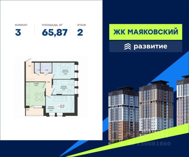 Квартира: 3 к 85,35 кв.м., 2 этаж в комплексе Z-town, 1 очередь, корп.1, сдача: 2кв. , этажей: 21, адрес Воронеж г., Чуева наб., д. 7, Застройщик: Новый код.
