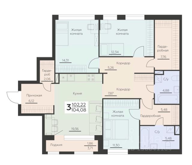 Продаётся 3-комнатная квартира в строящемся доме (Позиция 38), срок сдачи: III-кв. 2026, общей площадью 75.9 кв.м., на 4 этаже. Расположение, транспортная доступность Жилой комплекс "Озерки" - это квартал 17-этажных зданий бюджетного класса, возведенных по технологии объемно-блочного домостроения. Квартал находится в юго-восточной части города, в Левобережном районе, на улице Ильюшина, рядом с улицами Шидловского и Иркутская. Путь от квартала "Озерки" до центра города на общественном транспорте займет примерно 20-30 минут. Ближайшая автобусная остановка называется "ЖК Озерки". Примерно в двух километрах от комплекса находится станция "Придача" (известная также как железнодорожный вокзал "Южный"), от которой на самых быстрых электропоездах можно за 29 минут доехать до железнодорожного вокзала "Воронеж-1". Инфраструктура Собственная инфраструктура квартала включает в себя два детских сада, общеобразовательную школу, торговый центр, магазины и офисные помещения. В радиусе двух километров от "Озерков" находятся детские сады 130, 112, 88, 133, 183, 42, 180,школы 30 69, 23, Институт ФСИН, детская поликлиника 7, отделение восстановительного лечения поликлиники 14, супермаркеты "Магнит", "Пятью пять", "Пятерочка", "Центорг", "Европа", рынок "Грузовой двор", продуктовый рынок, магазин "Хозтовары", отделение почты. За 5-10 минут от квартала можно доехать до городской больницы 10, больницы 16, торговых центров Metro Cash& Carry, "Твой Дом", "Айсберг", "Ваи", "Полет", гипермаркетов "Леруа Мерлен", "Линия", магазина сети "Ассорти идей", военно-исторического музея "Музей-диорама", стадиона "Буран". Экологическая ситуация здесь, по городским меркам, хорошая. Квартал находится на окраине города, рядом с лесопарковой зоной. В то же время, поблизости с ним располагаются автотрасса на улице Ильюшина, нефтебаза и промзоны. Надежность застройщика Квартал "Озерки" - это очередной масштабный проект основанной в 1997 году воронежской компании "Выбор". Это одна из лидирующих компаний на воронежском строительном рынке, специализирующаяся на возведении жилых зданий, коммерческих и социальных объектов в Воронеже и Воронежской области. Также "Выбор" занимается реконструкцией исторических зданий, дизайном, ремонтом и отделкой помещений. Компания строит самую разнообразную жилую недвижимость (от эконом до бизнес-класса). Одно из главных направлений деятельности компании - комплексное освоение территорий и возведение крупномасштабных жилых кварталов и микрорайонов. Другая особенность компании - использование инновационной технологии строительства зданий из объемных блоков (которые для компании изготавливает собственный завод объемно-блочного домостроения "Выбор-ОБД"). Кроме того, в состав компании входит проектный институт. В родном городе компания "Выбор" построила жилые комплексы "Эльбрус", "Цветной бульвар", Ultra, "Ботанический сад", "Атлант", жилые дома на улицах Шишкова, Березовая роща, Тимирязева, Владимира Невского, бутик-отель "Ветряков", р
