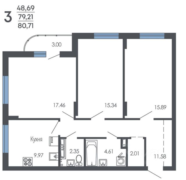Продается 3-комнатная квартира в кирпичном доме от застройщика "KИТ".