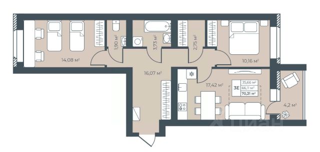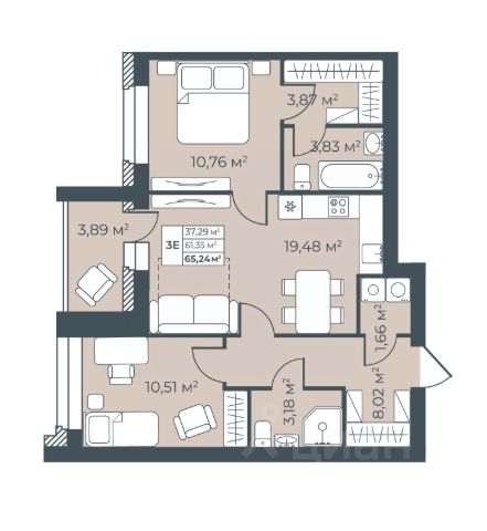 • ✅ Минимальная площадь: 62,6 м²