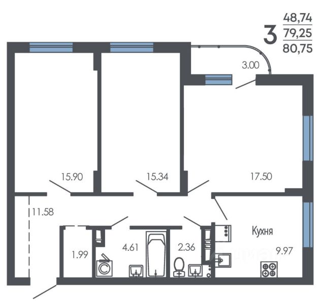 из просторной кухни-гостинной и 2-х жилых комнат,санузел раздельный,гардеробная.
