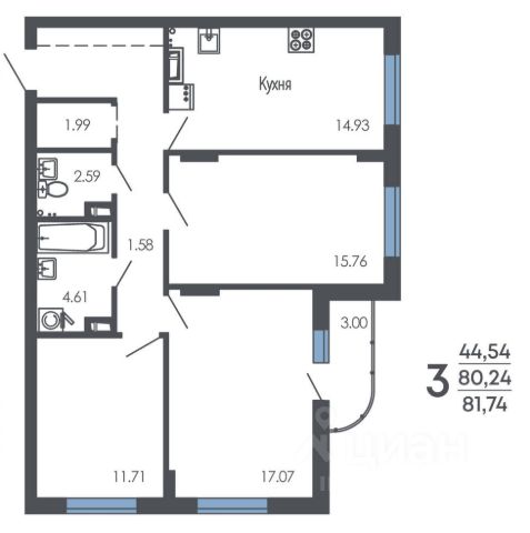 Продаётся 3-комнатная квартира в строящемся доме (Дом 1), срок сдачи: II-кв. 2026, общей площадью 80.73 кв.м., на 6 этаже. Новый жилой комплекс "Glinki парк" от группы компаний "Новострой" расположен по адресу: г. Воронеж, по ул. Ломоносова.