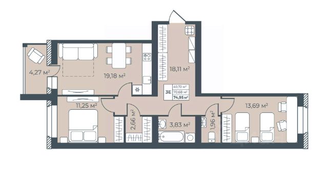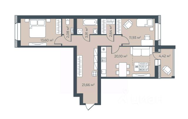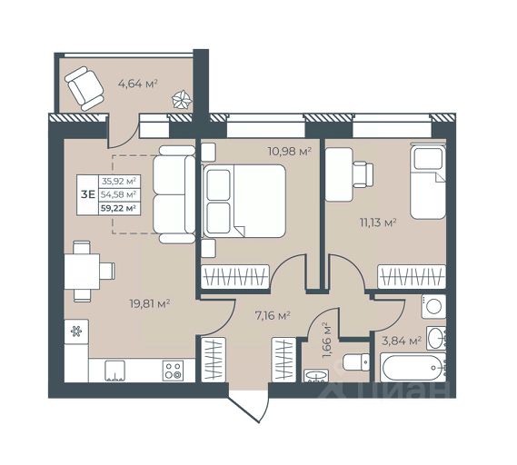 • ✅ Минимальная площадь: 59,5 м²