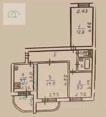 Площадь жилых комнат — 17 м²,12.8 м², 9.3 м²;