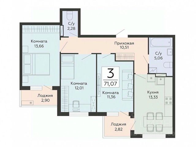 Продаётся 3-комнатная квартира в строящемся доме (Позиция 38), срок сдачи: III-кв. 2026, общей площадью 75.9 кв.м., на 9 этаже. Расположение, транспортная доступность