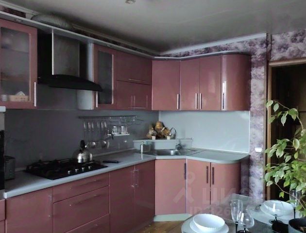 Зона кухни отделена перегородкой и барной стойкой от остальной комнаты. Деревянный фартук. Качественная столешница, сколов, дефектов на дереве нет. Подсветка. Всё делалось под заказ, в 1 стиль. Гарнитур сделан под потолок, глубокие полки.