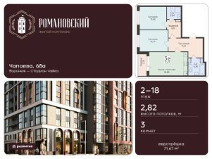 Жилой комплекс "Романовский" - проект класса "комфорт плюс", расположенный на улице Чапаева, в месте, где история встречается с современностью. Соседство с объектом культурного наследия "Водонапорная башня Романовской слободы" делает жилой комплекс воплощением статусности, комфорта и умиротворения. Выбирайте спокойную размеренную жизнь в шумном мегаполисе, не отказываясь от привычных занятий и увлечений. Прогулочный бульвар, стадион для спорта на свежем воздухе, супермаркеты, креативный кластер здесь есть всё, что нужно для полноценной наполненной жизни. Территория двора продумана так, чтобы каждый нашёл здесь занятие по душе. Игровые площадки с безопасным покрытием зонированы по возрасту и создают все условия для игр и общения детей. Современная спортивная площадка с воркаут-зоной поможет поддерживать себя в форме адептам спортивного образа жизни. Планировочные решения квартир спроектированы с учётом современных тенденций и удовлетворяют все потребности будущих жителей. Пространство каждой квартиры продумано до мелочей: • эргономичные студии с зонами для хранения в прихожей; • классические однокомнатные квартиры с гардеробными и большими кухнями; • двухкомнатные квартиры евро-формата с мастер-спальнями гардеробными комнатами; • просторные трёх- и четырёхкомнатные квартиры классического и евро-формата с гостиными, гардеробными и двумя санузлами. В холлах первых этажей спроектированы помещения для колясок и комнаты-лапомойки для ваших питомцев. На каждом этаже ЖК "Романовский" мы предусмотрели кладовые комнаты для хранения сезонных вещей. В проекте будет построен подземный паркинг и наземная парковка на прилегающей территории, рассчитанная на 258 мест. Несмотря на то, что парковка находится в непосредственной близости к подъездам, она не нарушает концепцию двора без машин. Ввод в эксплуатацию запланирован в 4 квартале 2027 года согласно проектной документации. Покупая квартиру в ЖК "Романовский" от ГК Развитие, вы получаете дополнительно БЕСПЛАТНО: - помощь в одобрении и получении ипотеки с минимальной процентной ставкой. - ПОЛНОЕ ЮРИДИЧЕСКОЕ СОПРОВОЖДЕНИЕ сделки купли-продажи - Помощь в реализации МАТЕРИНСКОГО капитала. - Консультация и показ объекта в любое УДОБНОЕ ВРЕМЯ - Помощь в ПОДГОТОВКЕ И СБОРЕ ВСЕХ ДОКУМЕНТОВ, необходимых для покупки.
