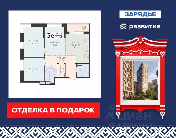 Жилой комплекс "Бунин" — проект с удивительной концепцией и необыкновенной архитектурой, невероятно комфортным и функциональным пространством для жизни. Авторы проекта — голландская архитектурная компания "KCAP Architects&Planners" в сотрудничестве с архитектурным бюро "А.Лен" (г. Санкт-Петербург). Жилой комплекс "Бунин" расположен на въезде в Воронеж со стороны Москвы, вдоль одной из главных городских магистралей - Московского проспекта. Оригинальная архитектурная композиция стилизована под стопки книг — вертикальные и горизонтальные. Книжные полки, обложки книг, страницы — все эти элементы узнаются в форме и отделке зданий. Технология строительства — монолитная. Входные группы подъездов, расположенные со стороны двора, выполнены в уровень земли, без ступеней и пандусов. В каждом подъезде оборудованы колясочные. Надежные и просторные лифты (в каждом подъезде по 2-3 лифта), в которые легко поместится велосипед и детская коляска. Входные двери парадных с витражным отделением, большие окна в местах общего пользования, а также датчики движения делают общее пространство светлым, безопасным и экономичным. Будут оборудованы места для службы консьержей. Пространство с благоустройством разделено на две зоны. Со стороны Московского проспекта будет организован сосновый сквер с прогулочными аллеями и общественными пространствами с зонами отдыха. С обратной стороны, рядом с яблоневым садом, будет находиться основное дворовое пространство, в которое вписаны детские и спортивные площадки, уличные тренажеры, workout и стилизованные зоны отдыха. Двор будет закрыт от машин. Кофейни, домашние рестораны, магазины, салоны красоты, расположенные на первых этажах коммерческих помещений, сделают жизнь удобной, практичной и чуточку камерной. Неподалеку от дома будет организован большой спортивный городок — с беговыми и велодорожками, площадками для игр в волейбол, стритбол, мини-футбол, настольный теннис и набирающую популярность в России игру в сквош. Двухуровневый подземный паркинг ЖК вмещает более 800 машин. В паркинге будут организованы круглосуточная охрана и видеонаблюдение. Оборудован лифт с жилых этажей, системой вентиляции и пожаротушения. Через дорогу от жилого комплекса, на территории площадью почти 35 гектаров, администрацией города создается полноценный социальный узел, который включает в себя общеобразовательную школу на 2860 мест и детский сад на 600. Рядом будут построены детская школа искусств с библиотекой имени Бунина, поликлиника на 1100 посещений в смену с подстанцией скорой медицинской помощи. А также в проекте предполагается 3 спортивных комплекса для занятий различными видами спорта. Например, такими как плавание, единоборства, настольный теннис, фигурное катание и другие игровые и индивидуальные виды спорта. 3-комнатная квартира в новостройке с отделкой в Воронеже.