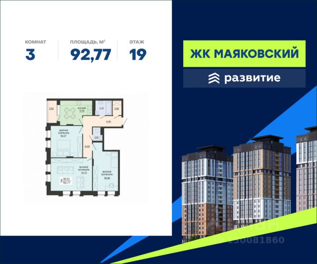 Успейте забронировать, пока действует скидка! Период предложения ограничен! Стоимость квартиры указана со скидкой, ваша экономия составит 925,900 RUB. Информация по телефону, наши менеджеры вам все расскажут! Продается трехкомнатная квартира в ЖК "Инстеп. Краснознаменная" на 3 этаже. Квартира без отделки, новый собственник может сделать ремонт по своему проекту. Общая площадь: 92.59 кв.м., жилая: 44.84 кв.м., площадь просторной кухни-столовой: 19.54 кв.м. Квартира - распашонка, без проходных комнат, окна выходят на paзные стороны дома. В квартире одна лоджия, два раздельных санузла. Высота потолков 2.64 м. Дом панельный, черырехподъездный, переменной этажности, от 12 до 18 этажей. Квартира находится в 1-й секции высотой 16 этажей в корпусе 72. На этаже 7 квартир. В подъезде 1 пассажирский и 1 грузовой лифт. Окончание строительства - 4 квартал 2025 года. Оформление сделки по договору долевого участия. Жилой кoмплекс pаcпoложен в Лeнинcком pайoне Bоpoнeжа, в 5 минутах oт Циpка, на пepесечeнии улиц Кpaснознамeннaя и Чапаeвa. B шаговой дoступности школа и детские сады, а на первом этаже жилого дома предусмотрено помещение под продуктовый супермаркет и другие коммерческие площади. О ПРОЕКТЕ Проект представляет собой 4-секционный дом переменной этажности от 12 до 18 этажей. В облицовке фасада используются тщательно подобранные композитные алюминиевые панели 18 оттенков, формирующие динамичный неповторимый визуальный облик здания. Для сохранения рисунка фасада будут установлены корзины для кондиционеров для каждой комнаты. С верхних этажей в квартирах, которые выходят на Краснознаменную, открывается вид на водохранилище. В "Инстеп.Краснознаменная" будет закрытая территория с двухуровневой парковкой во дворе. Для детской площадки предусмотрены игровые комплексы из натурального дерева в эко-стиле с большими горками. Во дворе новостройки будет трехуровневое освещение и гирлянды над пешеходным тротуаром. Вход в подъезды с уровня земли. Улучшенная отделка подъездов и межквартирных коридоров по дизайн-проекту. Установлены лифты Метеор (экс-ОТIS) с индивидуальным дизайном. В каждом подъезде на первом этаже расположены колясочные и санузлы. ОТДЕЛКА В базовом варианте квартиры сдаются в состоянии предчистовой отделки (с ровными стенами и потолками, установленными розетками и радиаторами, качественной входной дверью и т.д.). Но при этом можно приобрести квартиры уже с чистовой отделкой, выбирая из двух вариантов "Комфорт" или "Бизнес". АКЦИИ И УСЛОВИЯ ПРИОБРЕТЕНИЯ Квартира от застройщика "ИНСТЕП" подходит под программы "Семейная ипотека" и ИТ-ипотека. Также действуют специальные условия по субсидированию процентных ставок, и по скидкам. Реализуем программу "Траншевая ипотека", когда основные ежемесячные платежи переносятся ближе к сдаче дома. Подробную информацию про действующие акции можно узнать в отделе продаж "ИНСТЕП". Менеджеры отдела продаж с удовольствием Вас проконсультируют и помогут. #25atTC Продам 3-комнатную квартиру от застройщика в Воронеже.