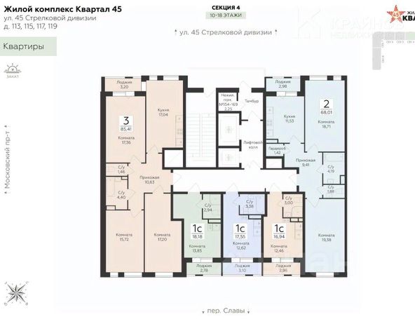 В продаже квартира площадью 72.20 кв. м с черновой отделкой. Квартира расположена на 18 этаже 18 этажного дома, в жилом комплексе комфорт-класса "Галактика 2|3".