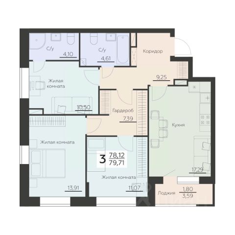 Продаётся 3-комнатная квартира в строящемся доме (Позиция 38), срок сдачи: III-кв. 2026, общей площадью 75.9 кв.м., на 8 этаже. Расположение, транспортная доступность