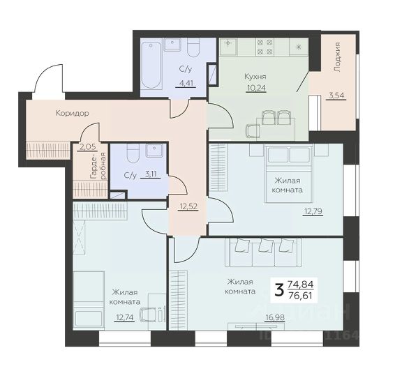 Продаётся 3-комнатная квартира в строящемся доме (Позиция 38), срок сдачи: III-кв. 2026, общей площадью 75.9 кв.м., на 6 этаже. Расположение, транспортная доступность