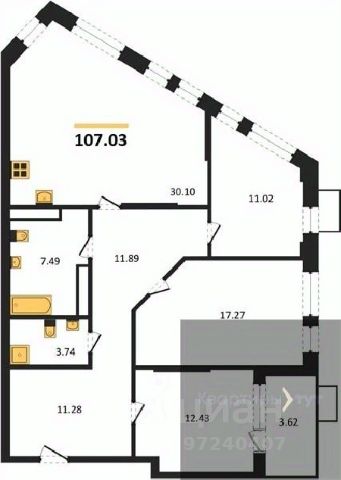 Квартира: 3 к 75,63 кв.м., 4 этаж в комплексе Z-town, 1 очередь, корп.1, сдача: 2кв. , этажей: 21, адрес Воронеж г., Чуева наб., д. 7, Застройщик: Новый код.