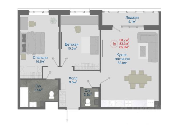 Современная трехкомнатная квартира с большой кухней-гостинной. Больная кухня-гостиная, Просторный холл, Выход на балкон из кухни Великолепная планировка с функциональным большим холлом. Гардеробная комната предполагают систему хранения, которая поможет избавиться от лишних шкафов. Комфортные средних размеров спальни. Удобное расположение двух санузлов. Выход на балкон комфортно располагается из большой кухни-гостиной., ПСК 4.6%19.9%. -------------------------------------------- Выгодные варианты покупки от Застройщика: 1. Семейная ипотека 4,6% на весь срок кредитования (без удорожания). 2. ИТ ипотека 4,6% на весь срок кредитования (без удорожания) 3. Рассрочка 0% (до сдачи дома) 4. Базовая ипотека для всех от 13,4% (до сдачи дома) -------------------------------------------- Микрорайон комфорт-класса с полной инфраструктурой открывает "южные ворота" города, формируя новый образ. "Матрешка", оправдывая своё название, спроектирована по принципу "город в городе" — все необходимые и привычные удобства — развлекательные, спортивные, образовательные центры находятся в пешей доступности. Микрорайон расположен вблизи кольцевой развязки рядом с Леруа Мерлен в Отрадном, что позволяет быстро добираться до основных точек города, а в центр — за 20 минут Школа на 825 мест Детский сад на 450 мест Площадки для выгула собак Внутренний двор без машин Бесплатный спортзал в каждом доме Игровые комнаты для детей и взрослых Заправки для электромобилей Велодорожки Территория микрорайона Разнообразные планировки и отделка Квартиры с террасами На территории микрорайона располагается большой многофункциональный спортивно-развлекательный комплекс площадью 50 тыс кв.м., оснащённый новейшим оборудованием и спортивными залами для тренировок, фитнеса, спорта и активного отдыха. Также вы можете остановиться в гостинице со SPA-зоной