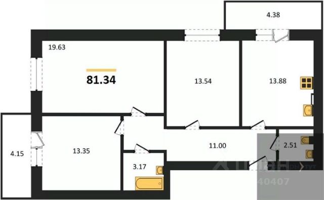 Квартира: 3 к 88,14 кв.м., 1 этаж в комплексе Александровский сад, 2 очередь, корп.1, сдача: 2кв. , этажей: 4, адрес Александровка село, Акварельная ул., , Застройщик: Еврострой.