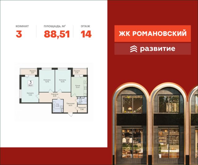 В продаже квартира площадью 71.67 кв. м с черновой отделкой. Квартира расположена на 2 этаже 18 этажного дома, в жилом комплексе "комфорт плюс" класса "Романовский". "Романовский" - это жилой комплекс нового поколения для комфортной жизни в городе. Особое внимание к деталям, амбициозная архитектурная концепция, планировки нового формата, высокое качество и привлекательная локация - вот из чего складывается ваша идеальная жизнь. "Романовский" - правильный выбор в пользу гармонии и комфорта. Расположение Пешком: - 3 мин. до остановки "Городской переулок"; - 5 мин. до остановки "Ул. Степана Панкова"; - 8 мин. до креативного кластера "Станция"; - 10 мин. до спортивного центра "Чайка". На автомобиле: - 8 мин. до Цирка; - 10 мин. до Адмиралтейской набережной; - 10 мин. до проспекта Революции; - 13 мин. до Центрального рынка. Благоустройство - просторный двор для всех видов досуга; - современная концепция "двор без машин"; - озеленение территории; - зонирование тихих и активных пространств; - игровая площадка с мягким покрытием; - воркаут-зона; - лужайки для йоги; - тенистые лаунж-зоны; - просторные входные группы; - большая площадь остекления; - в каждом подъезде работают лифты с доступом в паркинг; - помещения для хранения колясок; - комнаты-лапомойки для питомцев; - теплый подземный паркинг; - гостевая парковка на прилегающей территории; - круглосуточное видеонаблюдение во всех общественных пространствах; - ритейл на первых этажах. Окружение - пространство для спорта: стадион "Чайка", физкультурно-спортивный центр, бассейн, тренажерный зал; - пространство для природы: урочище "Чижовская дача", лесопарки "Оптимистов" и "Вдохновения", Воронежское "море"; - пространство для отдыха: цирк, театр оперы и балета, кинотеатры "Спартак", "Синема Парк"; ТЦ "Солнечный рай"; - пространство для повседневности: гипермаркет "Лента", Центральный рынок, множество детских садов, школ, ВУЗов и медучреждений. Купить 3-комнатную квартиру на улице Чапаева в городе Воронеж.