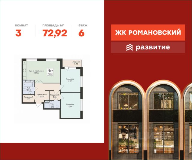В продаже квартира площадью 71.67 кв. м с черновой отделкой. Квартира расположена на 2 этаже 18 этажного дома, в жилом комплексе "комфорт плюс" класса "Романовский". "Романовский" - это жилой комплекс нового поколения для комфортной жизни в городе. Особое внимание к деталям, амбициозная архитектурная концепция, планировки нового формата, высокое качество и привлекательная локация - вот из чего складывается ваша идеальная жизнь. "Романовский" - правильный выбор в пользу гармонии и комфорта. Расположение Пешком: - 3 мин. до остановки "Городской переулок"; - 5 мин. до остановки "Ул. Степана Панкова"; - 8 мин. до креативного кластера "Станция"; - 10 мин. до спортивного центра "Чайка". На автомобиле: - 8 мин. до Цирка; - 10 мин. до Адмиралтейской набережной; - 10 мин. до проспекта Революции; - 13 мин. до Центрального рынка. Благоустройство - просторный двор для всех видов досуга; - современная концепция "двор без машин"; - озеленение территории; - зонирование тихих и активных пространств; - игровая площадка с мягким покрытием; - воркаут-зона; - лужайки для йоги; - тенистые лаунж-зоны; - просторные входные группы; - большая площадь остекления; - в каждом подъезде работают лифты с доступом в паркинг; - помещения для хранения колясок; - комнаты-лапомойки для питомцев; - теплый подземный паркинг; - гостевая парковка на прилегающей территории; - круглосуточное видеонаблюдение во всех общественных пространствах; - ритейл на первых этажах. Окружение - пространство для спорта: стадион "Чайка", физкультурно-спортивный центр, бассейн, тренажерный зал; - пространство для природы: урочище "Чижовская дача", лесопарки "Оптимистов" и "Вдохновения", Воронежское "море"; - пространство для отдыха: цирк, театр оперы и балета, кинотеатры "Спартак", "Синема Парк"; ТЦ "Солнечный рай"; - пространство для повседневности: гипермаркет "Лента", Центральный рынок, множество детских садов, школ, ВУЗов и медучреждений. Купить 3-комнатную квартиру на улице Чапаева в городе Воронеж.