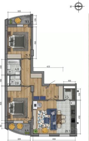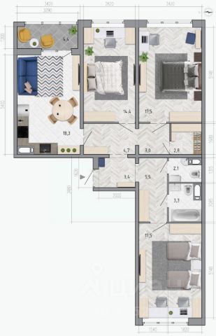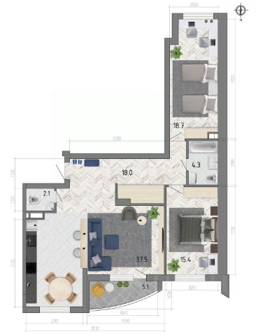 -Комнаты 18 м² и 15м² правильной конфигурации,