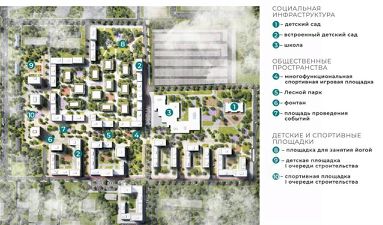 Рядом с ЖК администрацией города запланировано создание полноценного социального узла. В него войдут: многоуровневый образовательный комплекс, который включает в себя общеобразовательную школу на 2860 мест и детский сад на 600 мест; детская школа искусств с библиотекой; поликлиника на 1100 посещений в смену с подстанцией скорой медицинской помощи; многофункциональный спортивный комплекс "Академия".