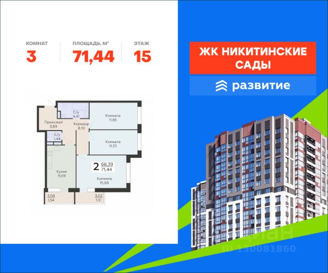 В продаже квартира площадью 79.21 кв. м с черновой отделкой. Квартира расположена на 3 этаже 20 этажного дома, в жилом комплексе комфорт-класса "Никитинские сады". "Никитинские сады" - это новое пространство, которое объединяет в себе современный внешний вид и атмосферу природного уюта. Жилой комплекс включает в себя 4 20-этажных корпуса, 1090 квартир различных планировок, множество общественных пространств для отдыха и собственную инфраструктуру. Наслаждайтесь всеми преимуществами города в окружении живописной природы! Расположение - 10 мин. пешком до остановки "улица Маршала Голикова"; - 5 мин. до бульвара Победы; - 9 мин. до ТРЦ "Арена"; - 20 мин. до ж/д станции "Березовая роща"; - 25 мин. до центра города; Благоустройство - несколько садов во дворе; - озеленение территории; - развивающие комплексы для малышей; - зоны для фотосессий; - скамьи по всему периметру; - прогулочные дорожки; - уличные тренажеры; - турники для воркаута; - мягкое покрытие на активных площадках; - оборудование из натуральных материалов; - освещение территории в вечерние часы; - просторный наземный паркинг; - кафе, магазины и бытовые сервисы на первых этажах. Окружение - природный отдых: Северный лес и лесопарк, пляж у реки Дон, озера Северск, Бычок, Круглое; - активный отдых: спорткомплекс "Арена Север", "Олимпик", футбольная школа и стадион, бассейн "Атлант", теннисный клуб "Спарта"; - культурный отдых: Музей почтового дела, КДЦ "Северный", храм Ксении Петербургской; - городской отдых: ТРЦ Сити-парк "Град" и "Московский проспект", ТРЦ "Арена", множество магазинов, кафе и студий красоты.
