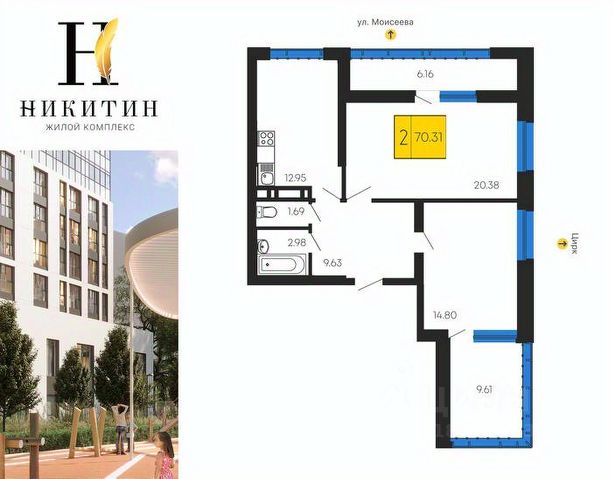 Продаётся 3-комнатная квартира в строящемся доме (Дом 2), срок сдачи: IV-кв. 2027, общей площадью 70.31 кв.м., на 6 этаже. Жилой комплекс "Никитин" расположен в Ленинском районе города Воронеж. Он представляет собой современный жилой комплекс, который включает в себя несколько многоэтажных домов, обустроенных территорию и парковочные места. ЖК "Никитин" предлагает различные типы квартир, от однокомнатных до многокомнатных, с различной планировкой и площадью. В квартирах учтены современные требования к комфорту и функциональности, а также использованы качественные материалы и технологии при их строительстве. Кроме того, в составе жилого комплекса "Никитин" также предусмотрены различные инфраструктурные объекты, такие как детские площадки, магазины, спортивные и развлекательные зоны. ЖК "Никитин" находится в удобном месте, которое обеспечивает доступность к основным транспортным магистралям и другим элементам городской инфраструктуры. ЖК "Никитин" обеспечивает своих жителей уютной и благоустроенной территорией. Здесь нет машин, что создает спокойную и безопасную атмосферу. Территория ограждена забором, что обеспечивает приватность и безопасность жителей. Территория комплекса разделена на 3 основные зоны: лаунж, детская и спортивная. Лаунж зона порадует жителей альпийскими горками, беседками и устройством для зарядки телефонов. В детской зоне созданы идеальные условия для активных игр и развлечений, а в спортивной зоне можно заниматься спортом на свежем воздухе. Также предусмотрена вспомогательная зона для выгула собак. Все эти элементы создают идеальное пространство для жизни и отдыха. Жилой комплекс "Никитин" предоставляет своим жильцам удобную и современную подземную парковку. В ней находится пост с мойками самообслуживания с пылесосом и возможностью подкачки шин. Для владельцев электрокаров предусмотрен пост зарядки, а также отдельное место для зарядки электроскутеров. Парковка обеспечена системой видеонаблюдения, которая обеспечивает безопасность автомобилей и жильцов. Въезд на паркинг осуществляется по системе считывания номеров, что упрощает процесс и делает его быстрым.