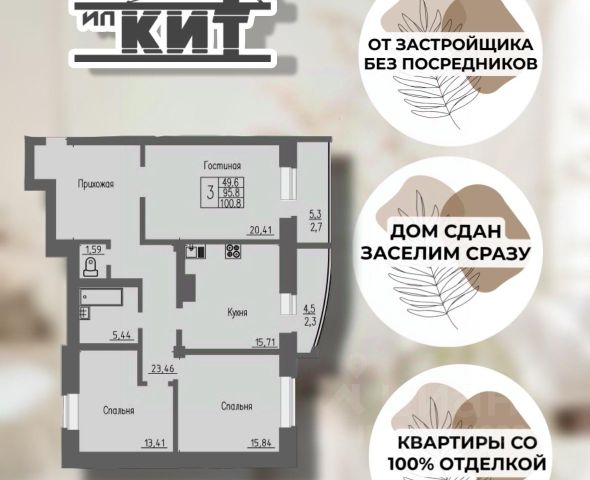Продаётся 3-комнатная квартира в сданном доме (Лётчика Филипова, 4 (позиция 3)), срок сдачи: IV-кв. 2024, общей площадью 100.8 кв.м., на 14 этаже. Расположение, транспортная доступность Пятнадцать 16-этажных корпусов жилого комплекса "Спутник" занимают территорию около 16 га вблизи окружной дороги (улицы Антонова-Овсеенко, Ломоносова) и Московского проспекта (магистраль А-134 - подъездная автодорога к федеральной трассе М-4 "Дон"). Жилой квартал расположен в северной части города, рядом с лесным массивом Воронежской нагорной дубравы. Комплекс граничит с коттеджным поселком "Лесная поляна", гаражным кооперативом и фруктовым садом. На расстоянии около 4 км находится пляж на берегу Воронежского водохранилища. По Московскому проспекту можно за десять минут доехать до международного аэропорта, за двадцать минут - до железнодорожного вокзала или административного центра города. В шаговой доступности находятся остановки общественного транспорта - 35 маршрутов в центр Воронежа, до вокзала, автостанции, аэропорта, в близлежащие районы и пригороды. Инфраструктура Внутри жилого комплекса построен детский сад на 280 мест, спортивные площадки для занятий гимнастикой и игр в волейбол, баскетбол и мини-футбол. Планируется открытие общеобразовательной школы на 1224 ученика. По соседству работают супермаркет "Магнит", школа с бассейном и гимназия. Вблизи ЖК "Спутник" расположены спорткомплекс "Олимпик", теннисный клуб "Адмирал" (с катком, бассейном и теннисными кортами), областная клиническая больница 1. Недалеко находятся торговый центр "Московский проспект" (с гипермаркетом "Лента"), сити-парк "Град", рынок "Воронежский". Практически в любой район города можно доехать на автобусе или маршрутном такси, которые останавливаются в десяти минутах пешком от комплекса. Надежность застройщика Проект комплексной застройки "Спутник" у Московского проспекта реализует ООО предприятие "ИП К.И.Т.", основанное в 1991 году. Компания начинала с производства сетки "Рабица", и за два десятилетия превратилась в крупную строительную организацию. Возведение первого жилого дома было начато в 1992 году. Предприятие владеет заводом по производству газосиликатных блоков, имеет собственную архитектурную мастерскую, производственную базу и крановое хозяйство. На заводе "Техоснастка" выпускаются лифты. Для обслуживания построенных домов создана собственная управляющая компания. Архитектура Общая площадь участка, выделенного под микрорайон ЖК "Спутник", превышает 21 га. Конструктивная схема здания - рамно-связевая. Особенность типовой серии 1.120.1-1с/89 - прочный каркас здания: колонны стянуты между собой стальными тросами, которые укладывают в ригели и заливают бетоном. Наружные стены имеют толщину 61 см, выложены газосиликатными блоками и облицованы полнотелым кирпичом. Высота потолков в квартирах - 2,7 м. Квартиры предложены с черновой отделкой или с ремонтом под ключ: с обоями, линолеумом, входной металлической и межкомнатными дверями, электрической плитой и сантехникой. Раз Продается 3-комнатная квартира 3-комнатных квартир в Спутник в Воронеже.