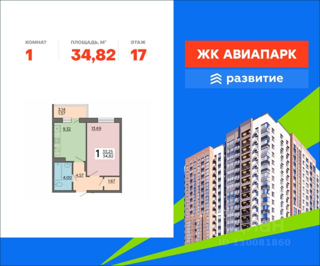 В продаже квартира площадью 34.82 кв. м с отделкой. Квартира расположена на 17 этаже 17 этажного дома, в новом жилом квартале "Авиапарк". Идеальное сочетание природности и городского комфорта теперь по доступной цене! Новый жилой комплекс "Авиапарк" собрал в себе все преимущества современного жилья комфорт-класса, сочетая умиротворение загородной жизни с удобствами городской среды. Расположенный в уютном районе Воронежа с видом на местное водохранилище, комплекс имеет отличную транспортную доступность, современную архитектуру, все необходимые повседневные сервисы и большое благоустроенное пространство для жителей. "Авиапарк" - жизнь в ярком окружении! Расположение Пешком: - 10 мин. до остановки "МЧС"; - 15 мин. до Шиловского леса; - 20 мин. до поликлиники и школы. На автомобиле: - 2 мин. до трассы на Острогожской улице; - 15 мин. до Ленинского района; - 20 мин. до Петровской набережной; - 25 мин. до лесопарков "Вдохновение" и "Оптимистов". Благоустройство - уютные дворы, разделенные на зоны; - прогулочный бульвар в окружении зелени; - большое игровое пространство; - фото-зона; - городок для малышей; - спортивные конструкции для активного отдыха подростков; - беговые и велосипедные дорожки; - фитнес-зона с тренажерами; - паркинг на прилегающей территории; - несколько входных групп с авторским дизайном интерьера; - места для хранения колясок и велосипедов; - легкий доступ к инфраструктуре: магазины, кафе, салоны красоты на первых этажах домов. Окружение - леса и парки: Шиловский, Долгий и Малышевский леса, парк "Семейный"; - живописные водоемы: Шиловское озеро, река Дон, Воронежское водохранилище, Жировский затон; - 3 пляжа, зоопарк под открытым небом, торговые центры "Ласточкино", "Альянс"; - 4 спортивных учреждения, футбольный стадион, школы, детские сады, сетевые супермаркеты.