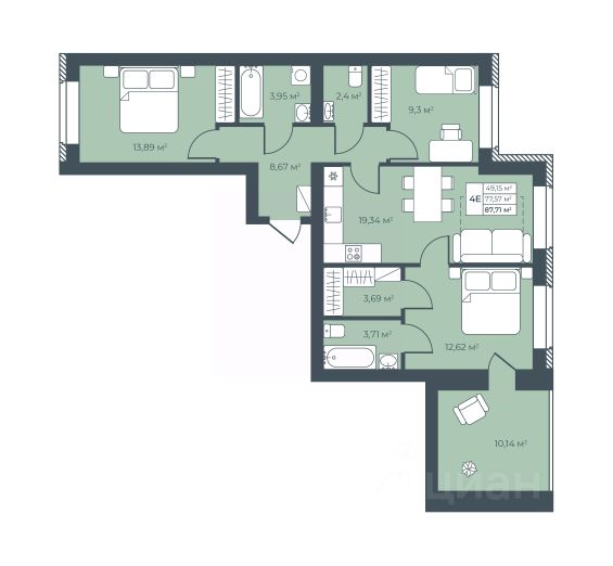 • ✓ В базе Циан 2 4-комнатных квартир на 5 этаже в Павловском районе Воронежской области