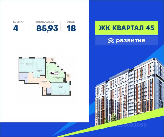 В продаже квартира площадью 85.93 кв. м с черновой отделкой отделкой. Квартира расположена на 8 этаже 18 этажного дома, в жилом комплексе комфорт-класса "Квартал 45". "Квартал 45" - это амбициозный проект будущего сердца Московского проспекта, в котором объединены лучшие градостроительные традиции, уникальная архитектура и современные технологии дизайна. Удачная локация рядом с центром, функциональные планировки, приватный парк в шаге от дома, собственный подземный паркинг на 187 машино-мест. Проект от девелопера "Развитие" сочетает в себе все преимущества современного комфортного жилья. Расположение Пешком: - 3 мин. до остановки "Московский проспект"; - 5 мин. до Центрального автовокзала; - 15 мин. до уютного Коминтерновского сквера. На автомобиле: - 10 мин. до центра Воронежа; - 10 мин. до Ботанического сада; - 15 мин. до Петровской набережной. Благоустройство - приватный двор для жителей; - безопасность: нет машин, работают видеокамеры; - много зелени: деревья, кустарники, газоны; - тихие места для отдыха на свежем воздухе; - спортивный корт для командных игр; - силовые тренажеры и турники; - игровой городок для детей всех возрастов; - лужайки для пикников; - велосипедные и беговые дорожки; - длинный прогулочный бульвар; - просторный холл с авторским дизайном; - 2 лифта в каждом подъезде - грузовой и пассажирский; - удобные зоны хранения колясок и спортивного инвентаря; - кафе, продуктовые магазины, салоны красоты и другая инфраструктура на первом этаже дома. Окружение - 5 парков в пределах 10 минут: Центральный парк, Ботанический сад ВГУ, Лесопарковый участок НИИЛГиС, парк Победы, Северный лес; - спорткомплекс и стадион "Динамо", "Арена Север", Центральный стадион профсоюзов; - детская и взрослая областная больница, несколько частных клиник; - ТРЦ "Московский проспект", ТЦ "Москва", множество сетевых супермаркетов.