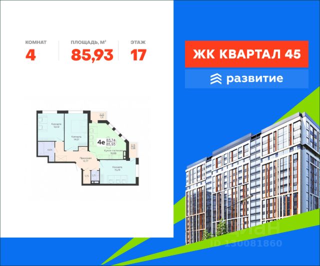 В продаже квартира площадью 85.93 кв. м с черновой отделкой. Квартира расположена на 7 этаже 18 этажного дома, в жилом комплексе комфорт-класса "Квартал 45". "Квартал 45" - это амбициозный проект будущего сердца Московского проспекта, в котором объединены лучшие градостроительные традиции, уникальная архитектура и современные технологии дизайна. Удачная локация рядом с центром, функциональные планировки, приватный парк в шаге от дома, собственный подземный паркинг на 187 машино-мест. Проект от федерального застройщика "Развитие" сочетает в себе все преимущества современного комфортного жилья. Расположение Пешком: - 3 мин. до остановки "Московский проспект"; - 5 мин. до Центрального автовокзала; - 15 мин. до уютного Коминтерновского сквера. На автомобиле: - 10 мин. до центра Воронежа; - 10 мин. до Ботанического сада; - 15 мин. до Петровской набережной. Благоустройство - приватный двор для жителей; - безопасность: нет машин, работают видеокамеры; - много зелени: деревья, кустарники, газоны; - тихие места для отдыха на свежем воздухе; - спортивный корт для командных игр; - силовые тренажеры и турники; - игровой городок для детей всех возрастов; - лужайки для пикников; - велосипедные и беговые дорожки; - длинный прогулочный бульвар; - просторный холл с авторским дизайном; - 2 лифта в каждом подъезде - грузовой и пассажирский; - удобные зоны хранения колясок и спортивного инвентаря; - кафе, продуктовые магазины, салоны красоты и другая инфраструктура на первом этаже дома. Окружение - 5 парков в пределах 10 минут: Центральный парк, Ботанический сад ВГУ, Лесопарковый участок НИИЛГиС, парк Победы, Северный лес; - спорткомплекс и стадион "Динамо", "Арена Север", Центральный стадион профсоюзов; - детская и взрослая областная больница, несколько частных клиник; - ТРЦ "Московский проспект", ТЦ "Москва", множество сетевых супермаркетов.