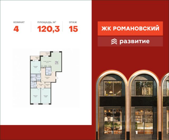 В продаже квартира площадью 120.30 кв. м с черновой отделкой. Квартира расположена на 15 этаже 16 этажного дома, в жилом комплексе "комфорт плюс" класса "Романовский". "Романовский" - это жилой комплекс нового поколения для комфортной жизни в городе. Особое внимание к деталям, амбициозная архитектурная концепция, планировки нового формата, высокое качество и привлекательная локация - вот из чего складывается ваша идеальная жизнь. "Романовский" - правильный выбор в пользу гармонии и комфорта. Расположение Пешком: - 3 мин. до остановки "Городской переулок"; - 5 мин. до остановки "Ул. Степана Панкова"; - 8 мин. до креативного кластера "Станция"; - 10 мин. до спортивного центра "Чайка". На автомобиле: - 8 мин. до Цирка; - 10 мин. до Адмиралтейской набережной; - 10 мин. до проспекта Революции; - 13 мин. до Центрального рынка. Благоустройство - просторный двор для всех видов досуга; - современная концепция "двор без машин"; - озеленение территории; - зонирование тихих и активных пространств; - игровая площадка с мягким покрытием; - воркаут-зона; - лужайки для йоги; - тенистые лаунж-зоны; - просторные входные группы; - большая площадь остекления; - в каждом подъезде работают лифты с доступом в паркинг; - помещения для хранения колясок; - комнаты-лапомойки для питомцев; - теплый подземный паркинг; - гостевая парковка на прилегающей территории; - круглосуточное видеонаблюдение во всех общественных пространствах; - ритейл на первых этажах. Окружение - пространство для спорта: стадион "Чайка", физкультурно-спортивный центр, бассейн, тренажерный зал; - пространство для природы: урочище "Чижовская дача", лесопарки "Оптимистов" и "Вдохновения", Воронежское "море"; - пространство для отдыха: цирк, театр оперы и балета, кинотеатры "Спартак", "Синема Парк"; ТЦ "Солнечный рай"; - пространство для повседневности: гипермаркет "Лента", Центральный рынок, множество детских садов, школ, ВУЗов и медучреждений.