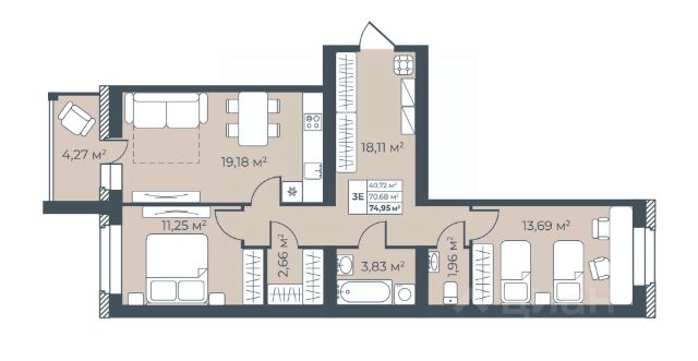 • ✅ Минимальная площадь: 70,3 м²