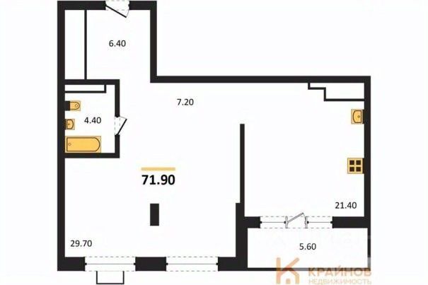 Квартира: 1 к 71,90 кв.м., 7 этаж в комплексе Ключи CLUB, 1 очередь, корп.1, сдача: 2кв. , этажей: 15, адрес Воронеж г., Содружества бул., д. 52 корп. 5, Застройщик: Новый код.