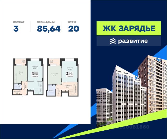 В продаже квартира площадью 85.64 кв. м с черновой отделкой. Квартира расположена на 20 этаже 21 этажного дома, в новом микрорайоне комфорт-класса "Зарядье" (Девелопер - ГК "Развитие"). Арт-квартал "Зарядье" - новый центр притяжения Коминтерновского района. Проект состоит из трех зданий переменной этажности, соединенных единым двором-парком, также он оснащен просторным подземным паркингом. Это уникальный квартал, в котором превосходная транспортная доступность, современная инфраструктура, сочетаются безупречные цветовые решения и эксклюзивные форматы квартир. Расположение Пешком: - 5 мин. до остановки "Политехнический институт"; - 7 мин. до Коминтерновского сквера; - 20 мин. до Центрального автовокзала. На автомобиле: - 5 мин. до Московского проспекта; - 10 мин. до центра города; - 15 мин. до Центрального парка; - 20 мин. до набережной у Воронежского водохранилища. Благоустройство - большой двор-парк; - функциональное зонирование территории; - сложный ландшафт, наполненный красками; - площадки для самых маленьких; - игровые комплексы для подростков; - футбольный корт; - протяженный прогулочный бульвар; - зоны отдыха среди деревьев; - беседки и скамейки по всему периметру; - workout-площадка; - дизайнерские лобби; - собственная служба консьержа; - 324 парковочных мест в подземном паркинге и на гостевой стоянке; - магазины, аптеки и кафе на первых этажах. Окружение - 4 уютных сквера: Коминтерновский, Солнечный, Политехнический, Электросигнальный; - спортивный центр BTR, Центральный стадион профсоюзов, фитнес-клуб "Олимп"; - ТРК "Арена", ТРЦ "Московский проспект", больницы, рестораны и учебные заведения Центрального района; - театр драмы имени Кольцова, Воронежский цирк, большой концертный зал, театр оперы и балета - все в пределах 15 минут.