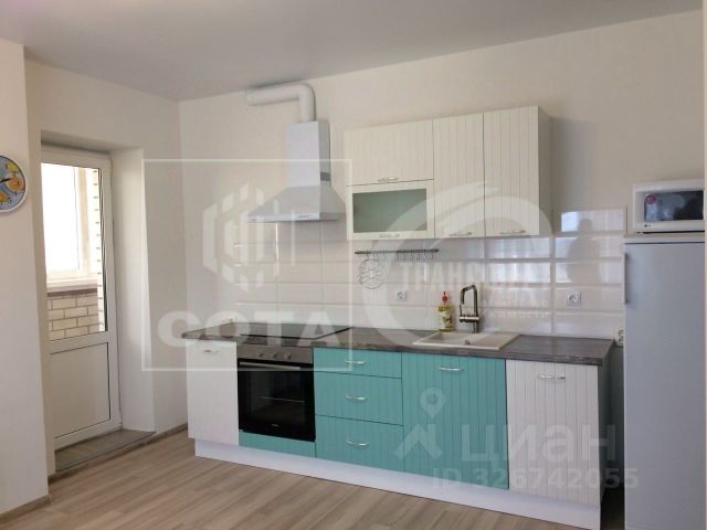 Кухонный гарнитур с встроенной техникой и столовой группой останется новому владельцу.