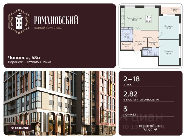 Жилой комплекс "Романовский" - проект класса "комфорт плюс", расположенный на улице Чапаева, в месте, где история встречается с современностью. Соседство с объектом культурного наследия "Водонапорная башня Романовской слободы" делает жилой комплекс воплощением статусности, комфорта и умиротворения. Выбирайте спокойную размеренную жизнь в шумном мегаполисе, не отказываясь от привычных занятий и увлечений. Прогулочный бульвар, стадион для спорта на свежем воздухе, супермаркеты, креативный кластер здесь есть всё, что нужно для полноценной наполненной жизни. Территория двора продумана так, чтобы каждый нашёл здесь занятие по душе. Игровые площадки с безопасным покрытием зонированы по возрасту и создают все условия для игр и общения детей. Современная спортивная площадка с воркаут-зоной поможет поддерживать себя в форме адептам спортивного образа жизни. Планировочные решения квартир спроектированы с учётом современных тенденций и удовлетворяют все потребности будущих жителей. Пространство каждой квартиры продумано до мелочей: • эргономичные студии с зонами для хранения в прихожей; • классические однокомнатные квартиры с гардеробными и большими кухнями; • двухкомнатные квартиры евро-формата с мастер-спальнями гардеробными комнатами; • просторные трёх- и четырёхкомнатные квартиры классического и евро-формата с гостиными, гардеробными и двумя санузлами. В холлах первых этажей спроектированы помещения для колясок и комнаты-лапомойки для ваших питомцев. На каждом этаже ЖК "Романовский" мы предусмотрели кладовые комнаты для хранения сезонных вещей. В проекте будет построен подземный паркинг и наземная парковка на прилегающей территории, рассчитанная на 258 мест. Несмотря на то, что парковка находится в непосредственной близости к подъездам, она не нарушает концепцию двора без машин. Ввод в эксплуатацию запланирован в 4 квартале 2027 года согласно проектной документации. Покупая квартиру в ЖК "Романовский" от ГК Развитие, вы получаете дополнительно БЕСПЛАТНО: - помощь в одобрении и получении ипотеки с минимальной процентной ставкой. - ПОЛНОЕ ЮРИДИЧЕСКОЕ СОПРОВОЖДЕНИЕ сделки купли-продажи - Помощь в реализации МАТЕРИНСКОГО капитала. - Консультация и показ объекта в любое УДОБНОЕ ВРЕМЯ - Помощь в ПОДГОТОВКЕ И СБОРЕ ВСЕХ ДОКУМЕНТОВ, необходимых для покупки.