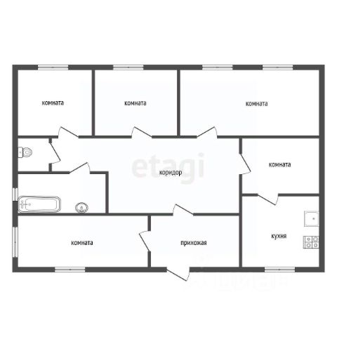 Помещения, м. кв. : 8,9 спальня; 10 спальня; 20,3 зал; 11,8 кухня; 7,8 коридор и раздельные - ванная и санузел; 5,4 прихожая в огород; 8,3 прихожая в дом ; хоз. помещение первое 6,6; 9,6 - второе.