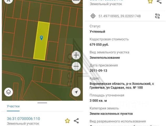 Код объекта: 944696. Продаю земельный участок в Хохольском районе, участок расположен в с. Гремячье. Прекрасное перспективное направление, подойдет для реализации крупного проекта по строительству ИЖС. Категория и виды разрешенного использования: * Земли населенных пунктов * Для индивидуальной жилой застройки * Для индивидуального жилищного строительства Общей Площадью — 114 565.00 м2 с. Гремячье имеет огромное историческое наследие времен ВОВ, о чем свидетельствует красивый мемориальный постамент. Так же в селе протекает река ДОН, с отличными живописными видами. Функционируют 2 школы и детский сад, в данный момент идет активное строительство новой школы. Открыто несколько современных торговых точек (пятерочка, магнит), присутствует уличная торговля ( деревенские продукты собственного производства). Отличное место для загородной жизни!