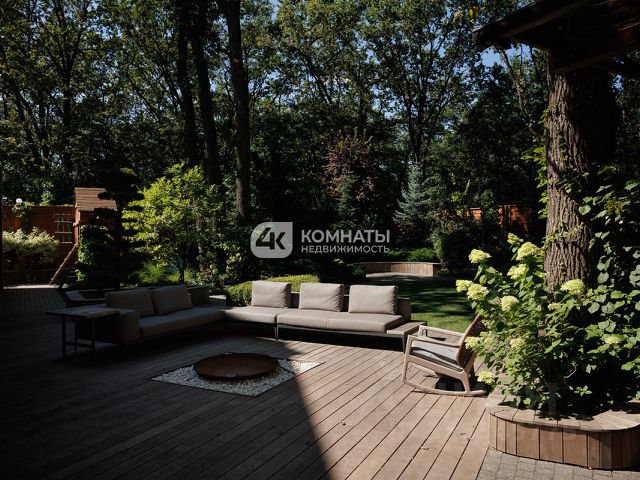 Участок: Ландшафтный сад, патио, зона барбекю (Grillvett, Big Green Egg), детская площадка и домик на дереве.