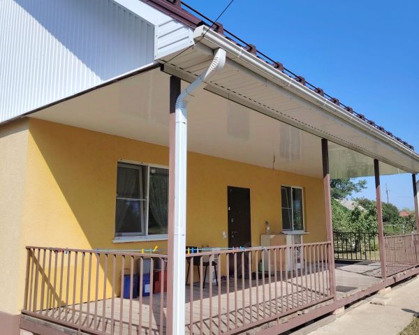 Дом с замечательной планировкой: просторная кухня-гостиная 28 кв.м с выходом на готовую террасу площадью 15 кв.м, три светлые изолированные комнаты, одна из которых является мастер-спальней (оборудован отдельный санузел с туалетом и душевой), широкий холл, большой совмещенный санузел, отдельная котельная 8 кв.м с выводами коммуникаций под стиральную машину, крыльцо. Сложен из газосиликата 200 мм, утеплен пеноизолом 50 мм, облицован дорогим керамическим кирпичом. Есть армопояс из кирпича. Фундамент ленточный, армированный, глубина заложения 1,1 м. Кровля - гибкая черепица. Дорогие окна с двухкамерными стеклопакетами. Чердак утеплен минеральной ватой 180 мм. На полу чистовая полусухая стяжка. Межкомнатные перегородки кирпичные.