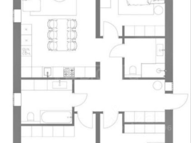 - 3 жилые комнаты: 13,8 м² + 13,3 м² + 22,4 м² (можно под спальни/детские/кабинет)