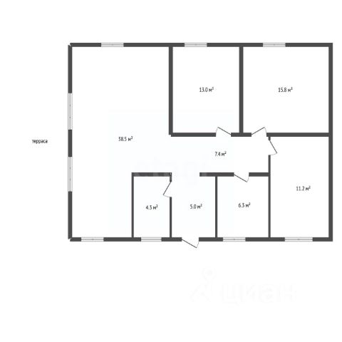 На 1 этаже: тамбур 1,9 кв.м, кухня 21.7 кв.м, 1 комната 18,4 кв.м, совмещенные душевая и туалет 5,7 кв.м с тёплым полом, лестница на второй этаж.