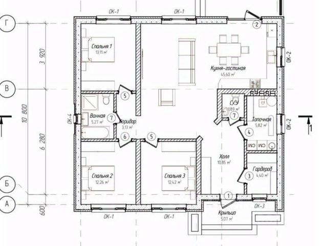 Три спальни, кухня-гостиная, кладовка, холодный коридор. Планировка приложена к объявлению.