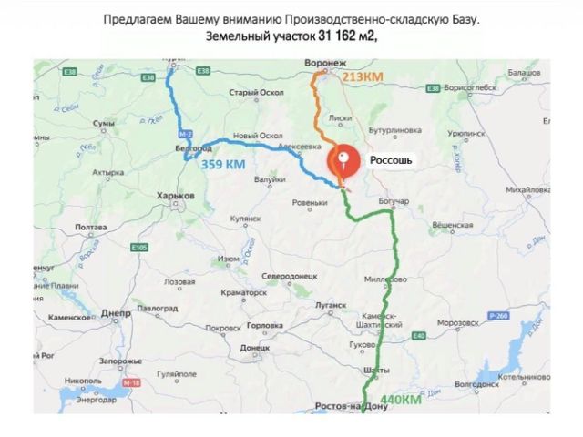 • Ваш грузовой транспорт не теряет ни минуты. Прямой доступ к федеральной трассе. Вы на главной артерии страны, между Воронежем (213 км) и Ростовом (440 км). Это не просто "удобно", это критически важно для скорости, снижения издержек и расширения рынка.