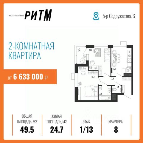 ЖК "РИТМ" — ДОСТУПНАЯ И ВЫГОДНАЯ ИНВЕСТИЦИЯ В ВАШЕ БУДУЩЕЕ Жилой комплекс "Ритм" по ул. Бульвар Содружества уч. 6 — часть масштабного проекта развития территории воронежского левобережья — микрорайона "Ключи", который займет 28,6 га недалеко от въезда в город по тамбовскому направлению. Здесь строится инновационный красивый мини-город. Он насыщен социальной и коммерческой инфраструктурой и обеспечен новейшими коммуникациями. Комплекс состоит не только из качественных домов. Решения по благоустройству стимулируют ведение активного здорового образа жизни. Продуманы возможности для взаимодействия людей, их творческой самореализации, выстраивания добрососедских связей и формирования современного приятного комьюнити. И все это на благоприятном экологическом фоне. Это действительно новый шаг в создании привлекательной среды для жизни в современном ритме! Жить, не ограничивая себя и свою семью, — разве не об этом вы мечтали? Вас ждет инновационное пространство, где вы будете вести свою насыщенную и интересную жизнь в выбранном вами ритме. Подземный паркинг на -1 этаже вместимостью на 114 машино-места, в том числе семейные парковки на два автомобиля освобождает двор от машин — там гораздо приятнее гулять с детьми или заниматься спортом. Жители смогут выходить к своему автомобилю в теплый паркинг прямо из лифта — нет беспокойства из-за погодных условий или за сохранность транспортного средства. Ваши гости тоже не останутся без парковки — на придомовой территории организовано - 131 место и вне придомовой территории - 213 мест. Для абсолютного комфорта на -1 этаже в каждой секции расположены кладовые помещение площадью от 2,10 до 5,0 кв.м., где можно хранить все что угодно — велосипеды, санки, лыжи и прочие вещи. Они больше не будут занимать весь балкон. Там гораздо приятнее пить кофе и любоваться видом из окна. ИНФРАСТРУКТУРА и ПРЕИМУЩЕСТВА Инновационное жилье в ЖК "Ритм" совсем рядом — 5 минут до Остужевского кольца, 20 минут до центра, рядом новая транспортная развязка. Легко добраться до работы и вузов, на концерт или в гости. Первый цифровой квартал в городе Дворы без машин Подземный паркинг и кладовые (в каждой секции) Сервисная Управляющая Компания (Smile) Новая инфраструктура района и коммуникаций Рядом с вами: новая уже действующая школа - 3 минут (просто перейти дорогу) новый детский сад (проект на стадии разработки, ориентировочный срок сдачи конец 2026 года) - 5 минут (просто перейти дорогу) 5 минут от центральной площади событий и прогулочных аллей стадион и спортивные площадки поликлиника (проект на стадии разработки) магазины аптеки детские площадки