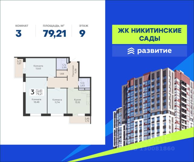 В продаже квартира площадью 60.43 кв. м с отделкой white box. Квартира расположена на 2 этаже 18 этажного дома, в жилом комплексе комфорт-класса "Галактика 2|3". "Галактика 2|3" - это современный квартал нового поколения, где есть все городские удобства, дополненные локациями для активного отдыха, а главное -близостью к природе. Здесь вас будут ждать уютные квартиры с панорамными балконами и большие дворы с детскими площадками. Проект реализован группой компаний "Развитие" - один из крупнейших девелоперов Воронежской области, занимающий лидирующую позицию среди застройщиков по объему текущего строительства. Расположение Пешком: - 5 мин. до улицы Независимости; - 5 мин. до остановки "СКС Лада"; - 15 мин. до Северного леса; - 20 мин. до ТРК "Арена". На автомобиле: - 5 мин. до трассы на ул. Антонова-Овсеенко; - 10 мин. до Московского проспекта; - 15 мин. до Центрального парка; - 20 мин. до набережной Максима Горького. Благоустройство - двор, разделенный на функциональные зоны; - ландшафтное озеленение; - тихие уголки для отдыха; - скамьи и садовая мебель; - каменные дорожки для прогулок; - велосипедные и беговые дорожки; - большой игровой кластер для подростков; - активная площадка для малышей; - workout-тренажеры; - безопасное мягкое покрытие; - освещение в темное время суток; - большая открытая парковка; - кладовые для хранения велосипедов или лыж; - коммерческие офисы с ресторанами, магазинами и кафе. Окружение - жизнь по соседству с природой: Северный лес, озёра Бычок, Северск и Круглое, Фигурная роща, река Дон; - спортивные объекты: спорткомплекс "Арена Север", стадионы "Воронеж-Ринг", "Мир футбола", "Атлант", конный клуб "Старица", "Олимпик", ТРЦ Сити-парк "ГРАД"; - культурный отдых: музей ВДВ в парке Победы, Археологический музей, культурный центр "Северный"; - ТРЦ "Арена", "Московский проспект", школы, детские сады, супермаркеты.